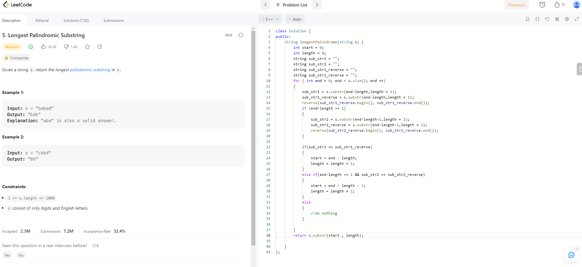 이렇게만 해도 되는 이유는 긴 문자 가운데 Palidromic 이 있다면 앞에 문자를 더해가면서 반드시 찾을 수 있게 된다